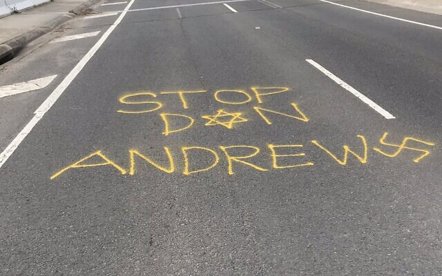 The words “Stop Dan Andrews” were smeared on a road in Melbourne along with a Magen David replacing the “a” in Dan, and a swastika instead of the “s” in Andrews. Executive Council of Australian Jewry co-CEO Alex Ryvchin lamented, “[t]his is absolutely appalling. When segments of society descend into conspiratorial thinking the evil of antisemitism always surfaces.” Read Now...